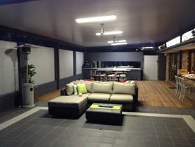 A couple of Stainless steel fans and LED lighting for this outside patio area