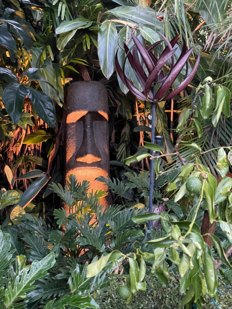 This lovely dinosaur surrounded by nice rainforest was lit up with waterproof LED lighting